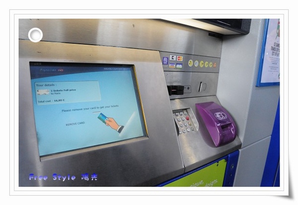使用信用卡直接買票,我用聯邦信用卡買的...從機場到巴黎市區一個人是8.4歐元,有英文版,所以不用擔心
