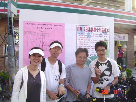 驚『騎』在中寮.集集一、動機-激動-機動(首部曲)腳踏車店的老闆正專注地幫我檢查獨輪車的輪胎,店門口貼著一張海報『南投集中精神-鐵馬驚『騎』在中寮.集集』,這斗大的標語馬上勾起我的雄心壯志,在26吋的『冰鴿』入手後,便決定開始我的長征活動,一開始根本不知道路況的我,一股腦兒的開始詢問學校同事有無意願參加,騎不騎得動還是個問題呢! 至少多一點人壯膽也好,人數確定後,,而我們選擇少一輪的獨輪車,也不知道這樣「減輕裝備」能不能衝得更快,但可以知道這將會是一次難忘的經驗,就憑著這股激動的情緒,實踐了老祖宗所說的「坐而言不如起而行」。衝吧!